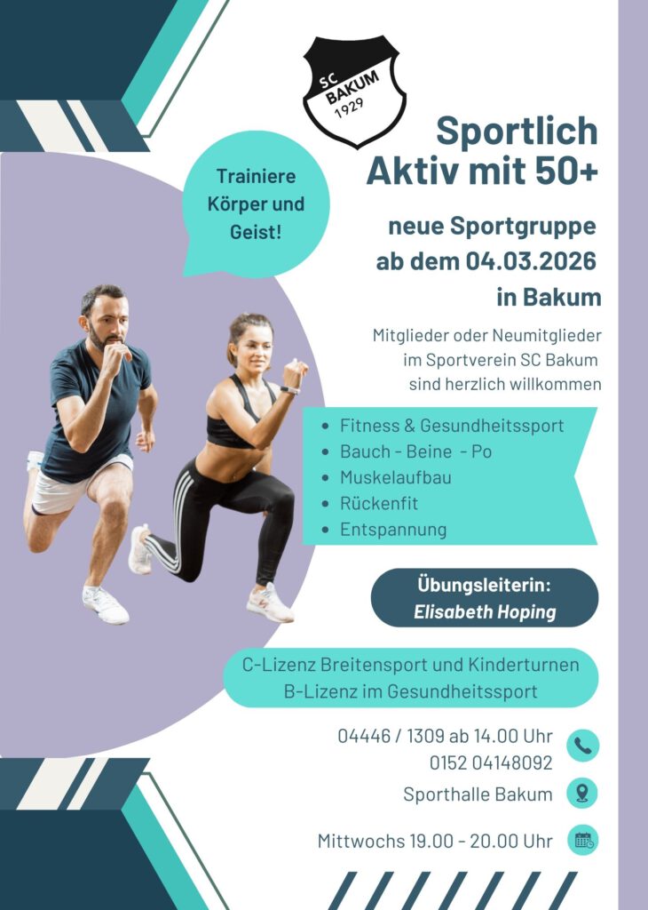 - Fußball-Camp 2025An den ersten beiden Tagen in den Herbstferien hat der SC Bakum sein in Eigenregie organisiertes Fußballcamp für etwa 75 Mädchen und Jungen veranstaltet. Getragen von vielen ehrenamtlichen Helfern erlebten die Kinder zwei tolle Tage mit vielen abwechslungsreichen Trainingseinheiten sowie … weiterlesen „Fußball-Camp 2025“